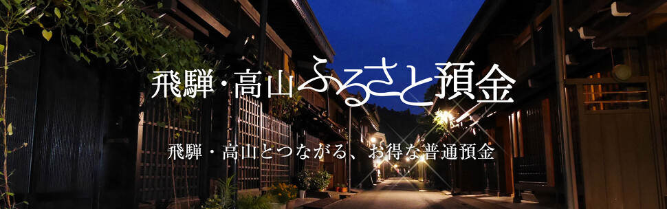 飛騨・高山ふるさと預金とは、金利がお得、簡単便利、特典満載のたいへんお得な普通預金です。