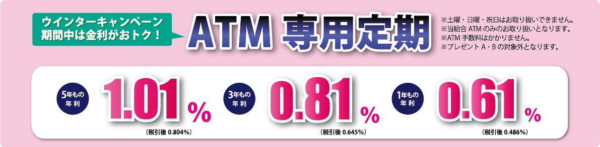 ウインターキャンペーン期間中、「ATM専用定期」の金利もおトクです!