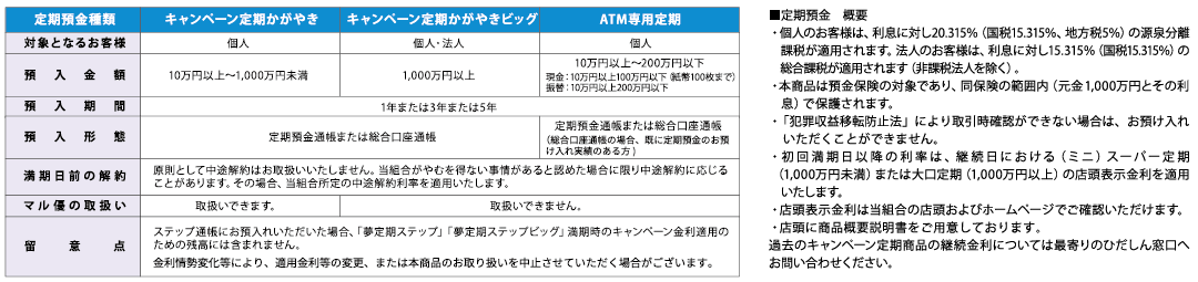 キャンペーン定期の概要はページ下部「定期預金概要」をご覧ください。