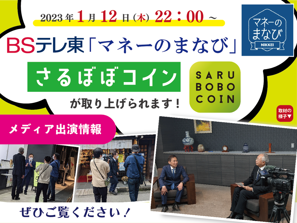 BSテレビ東京にて毎週木曜日22時より放送中の「日経スペシャル マネーのまなび」で、「広がるデジタル地域通貨」をテーマに「さるぼぼコイン」が取り上げられます。