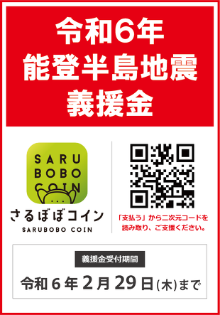 【再案内】さるぼぼコインによる「令和6年能登半島地震義援金」の受付について