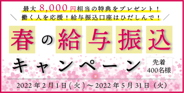 特典1:期間中、新たに給与振込をご指定いただいた方(先着400名)