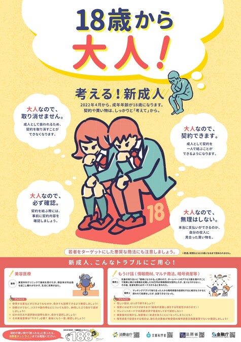 2022年4月1日から民法上の成年年齢が20歳から18歳に引き下げされます。